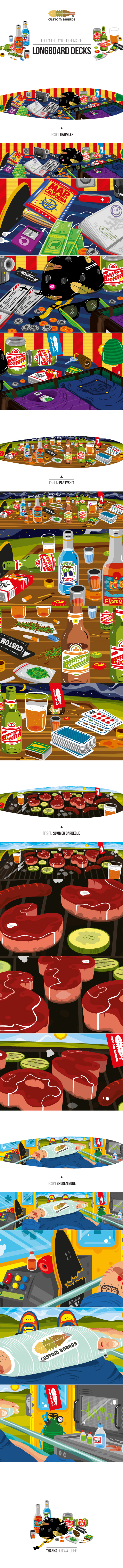 The collection of designs for longboard decks. Client: CustomBoards